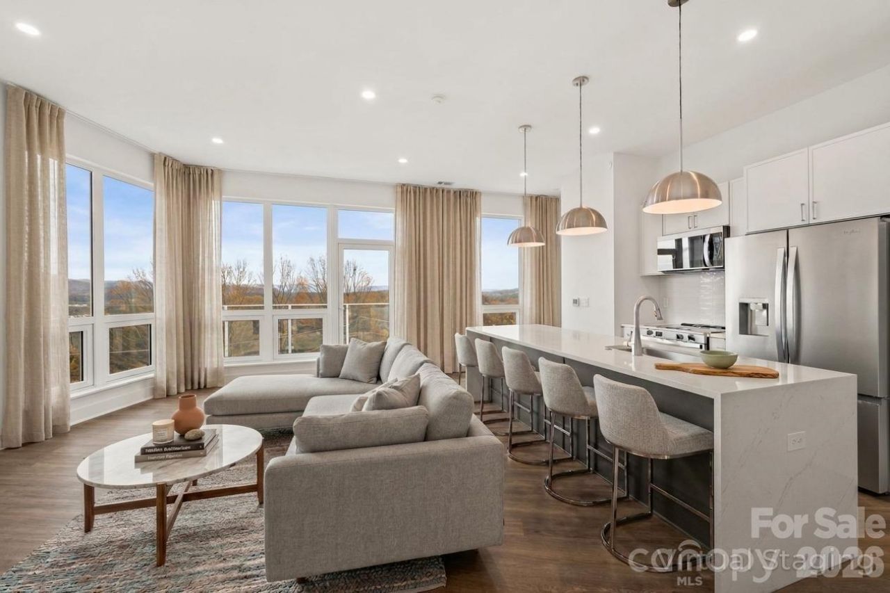 Discover elevated urban living at One23 Haywood, where modern design and an unbeatable downtown Asheville location come together seamlessly.This thoughtfully designed 1-bedroom residence with a split versatile flex space and bathroom layout offers a rare and highly functional floor plan?perfect for both everyday living and hosting guests. The split bath configuration enhances privacy and convenience, creating an ideal setup for visitors while maintaining a comfortable primary suite experience.Expansive floor-to-ceiling windows fill the home with natural light and frame stunning due west views, delivering breathtaking sunsets that can be enjoyed year-round. The open-concept living, dining, and kitchen areas feature clean lines and contemporary finishes, creating a sophisticated yet welcoming space for entertaining or relaxing.The flex space adds exceptional versatility, easily serving as guest accommodations, a home office, or a creative studio?making this residence as adaptable as it is stylish.Step onto your private balcony?an extension of the living space?perfect for unwinding in the evening while taking in vibrant sunsets over the mountains.Located in the heart of downtown Asheville, just one block from the iconic Grove Arcade, this residence offers exceptional walkability to the city's best dining, shopping, and entertainment.Residents of One23 Haywood enjoy a curated lifestyle with concierge service and a secure community environment. Situated within Asheville's designated short-term rental overlay district, this residence allows for short-term rentals, presenting an outstanding opportunity for both personal use and investment. For investors, Towns Management is available to provide short-term rental performance data.Experience modern, flexible living at One23 Haywood?where thoughtful design, guest-friendly functionality, and unforgettable sunset views come together in one of Asheville's most desirable addresses.